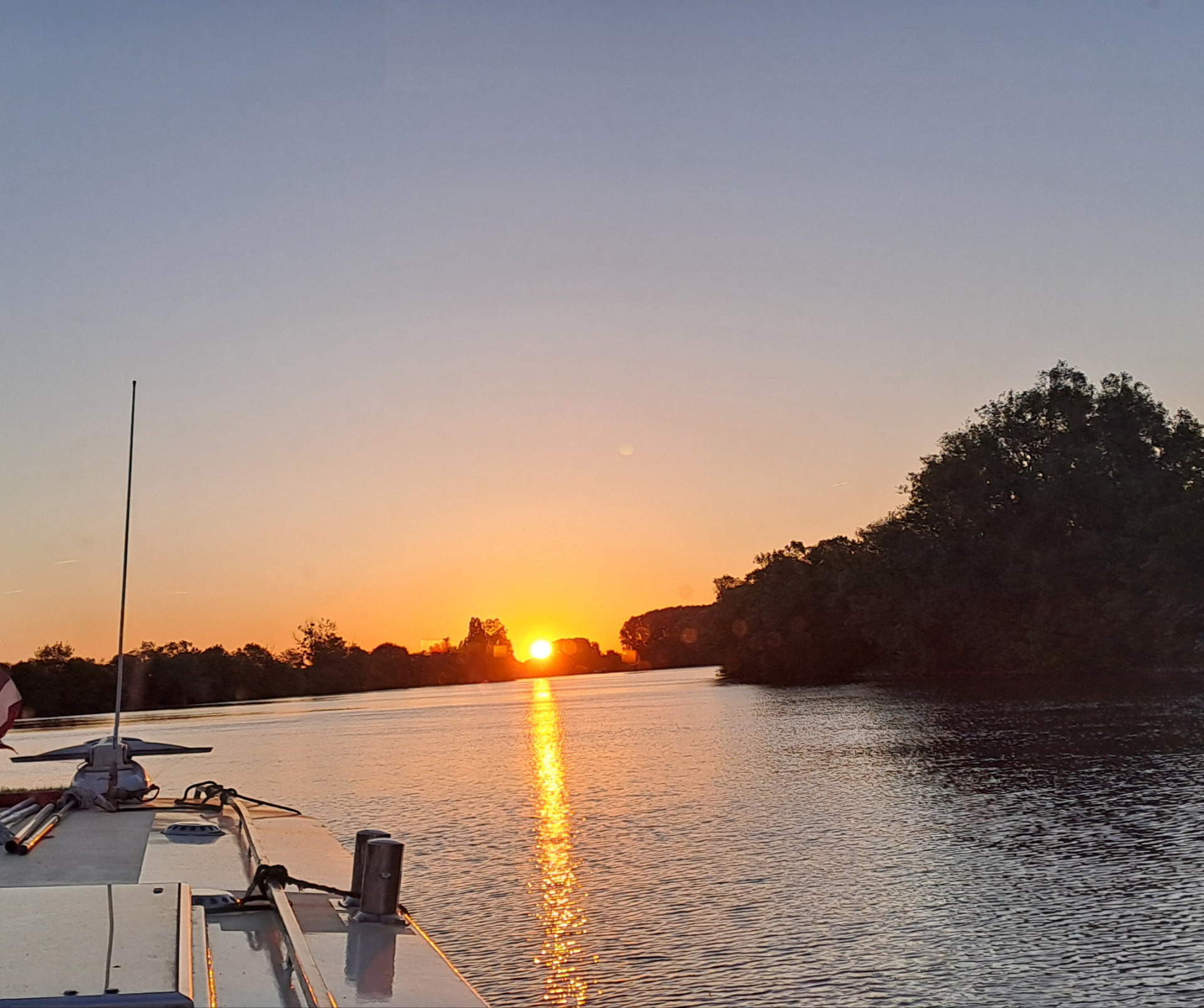Es ist nicht immer ganz einfach, morgens freiwillig aus dem Bett zu kommen, zumal es schön warm und gemütlich ist. In der Nacht kühlt es immer noch ziemlich stark ab, die Heizung haben wir seit einiger Zeit ausgestellt und so ist Bewegung das Beste was sich einem anbietet. Einige Dehnübungen, ein paar Liegestützen und schon beginnt auch die Pumpe eines älteren Herren wieder auf Volltouren zu laufen. Bea kam auch verschlafen aus ihrem Kämmerlein und erstaunte sich ab der Fitness ihres Pauls. Dieser wurde schlagartig noch fitter, als er sah, dass das Schiffchen, das in der Nacht vor ihnen lag gerade in die selbe Richtung abgefahren war, in die auch wir wollten. Von Gergy nach St. Jean-de-Losne brauchen wir in der Regel etwas mehr als fünf Stunden, wenn die Schleusen für uns bereit sind. Damit diese Möglichkeit weiterhin gegeben war, mussten wir also dem anderen Schiffchen schleunigst nachsetzen. In St. Jean wollten wir neue Seile kaufen, da zwei unserer alten in Castelnaudary von halblustigen Menschen angeschnitten worden waren. Wir wollten vor Mittag da sein, damit wir die neuen Seile noch heute erhalten könnten. Nun, kurz nach der Abfahrt ging dann die Sonne herrlich auf und der ganze kurze Stress war sofort wieder vergessen. Ah, das andere Schiffchen hatten wir schnell eingeholt und danach waren beide kommenden Schleusen immer für uns bereit. Die neuen Seile sind bereits an ihrem Platz und wir sind für die Zukunft wieder gerüstet.