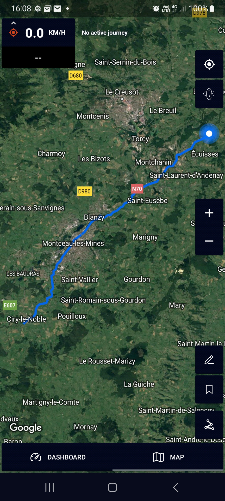 Der Tag hat gut angefangen, die erste Schleuse stand bereits offen, obwohl wir nicht angemeldet waren. Ein kurzer Anruf beim VNF und schon konnten wir starten. Das haben die da recht genial gelöst, alle Schleusen schön programmiert, wir können immer gerade einfahren und den Schleusenprozess auslösen. Heute haben wir noch den Jean Luc kennengelernt, er stand an der zweiten Schleuse und fragte, ob er wohl mit uns bis Montceau-les-Mines mitfahren können, er sei heute schon 20 Kilometer zu Fuss unterwegs, also seit halbfünf Uhr! Natürlich konnten wir ihm seinen Wunsch nicht ausschlagen, er strahlte vor Freude, rief alle seine engsten Freunde und Verwandten an um ihnen seine kleine Sensation weiterzugeben. In Montceau steht alles still, wenn ein Schiffchen naht, drei Hebebrücken öffnen sich nacheinander, wir freuen uns auch. Nach einer weiteren Schleuse können wir direkt neben dem Einkaufszentrum kurz anhalten und das Wichtigste einkaufen und schon geht es wieder weiter, bis wir oben auf dem "Berg" in Montchanin ankommen. Da auch hier Schatten ein sehr knappes Gut darstellt, fahren wir weiter und noch 8 Schleusen den "Berg" wieder hinunter nach St.-Julien-sur-Dheune. Der Platz ist gut, hat aber praktisch keinen Internetempfang, 🙄.